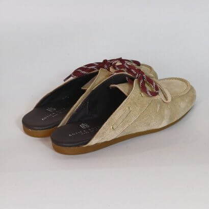 A flat mule from ANTICA BOTTEGA, made from real suede.