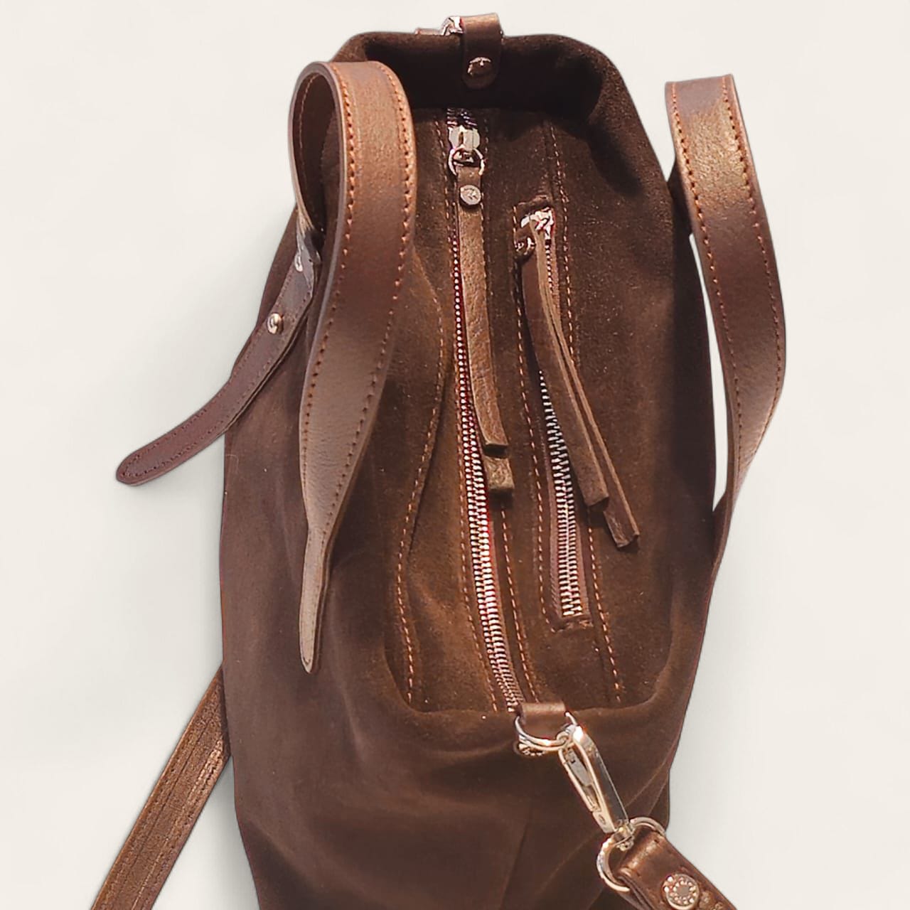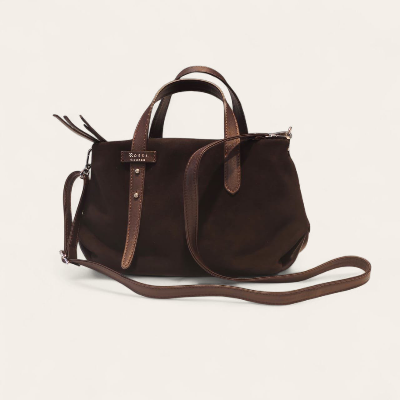 ROSSI BAG embodies the art of Italian craftsmanship with superior fabrications. This brown suede bag comes with a detachable shoulder strap allowing it to become a cross body bag & one internal compartment, one internal zipped pockets & two internal pockets.