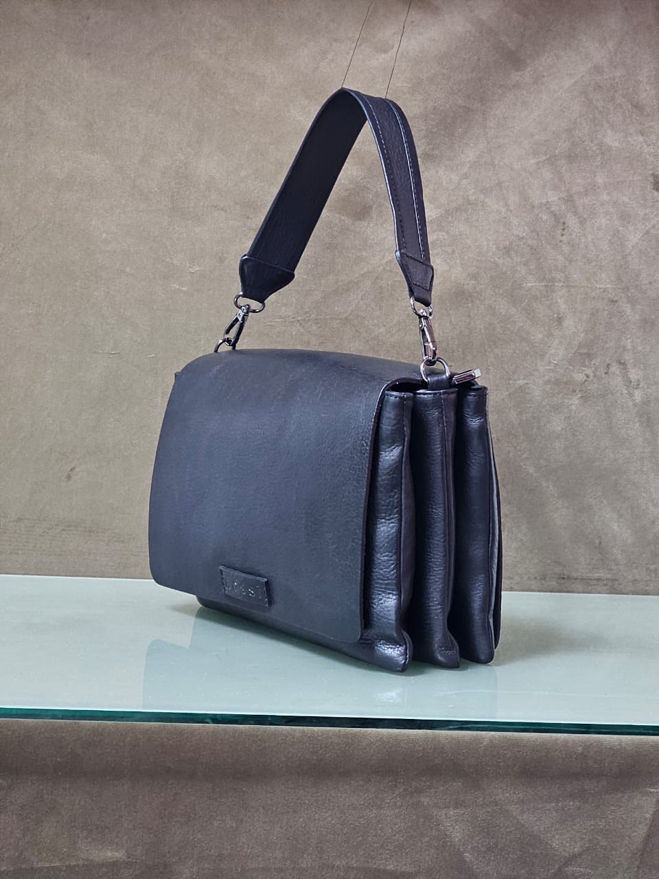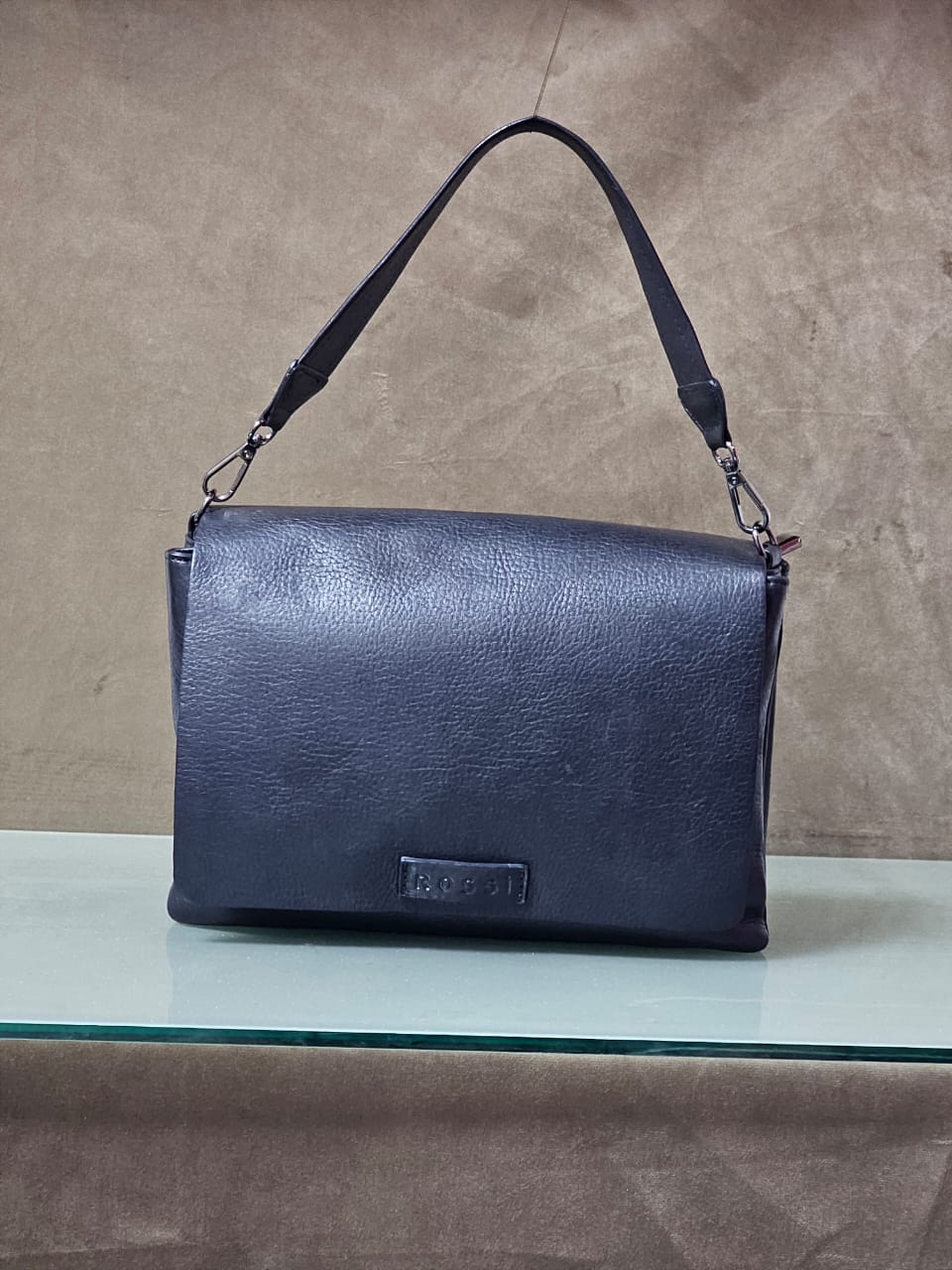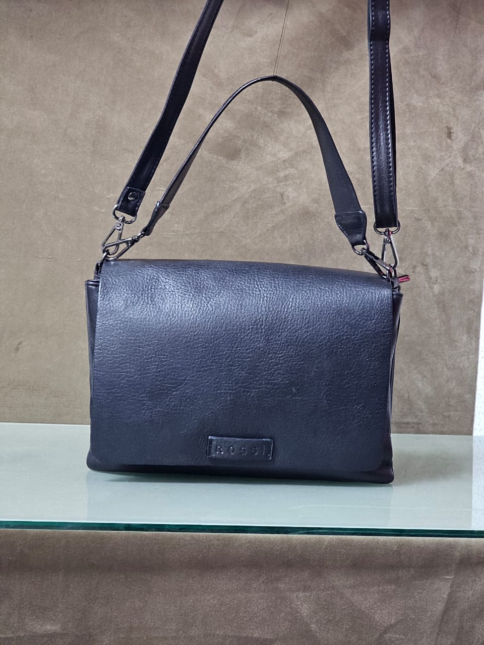 Italian Calf Leather Woman Bag. Magnetic flap, 3 compartments (1 zipped). Small handle & long adjustable strap. Crossbody option. Dust bag. Bruno Rossi.