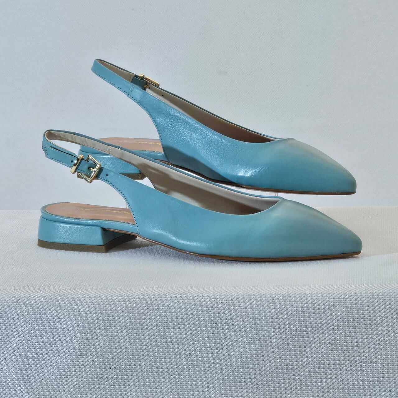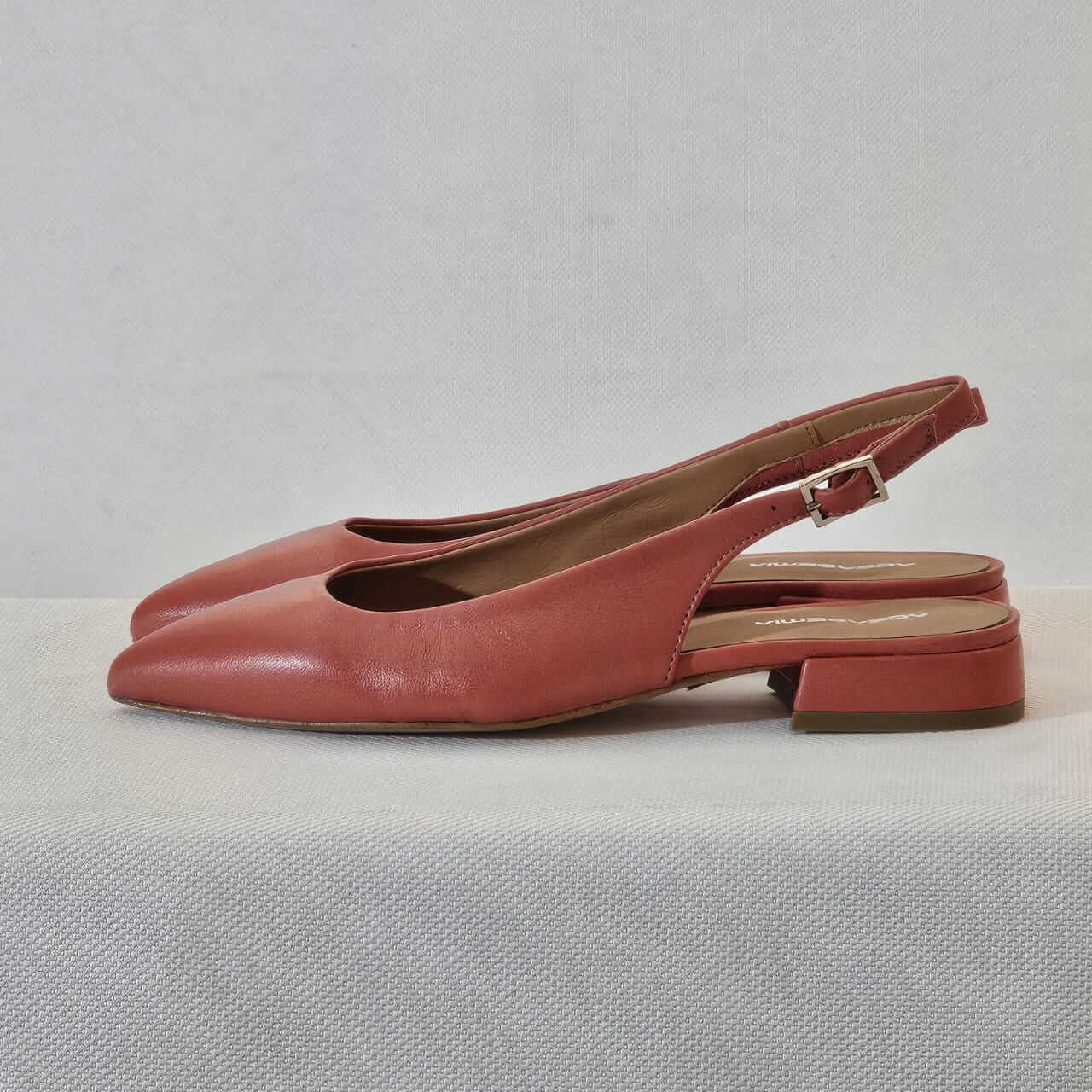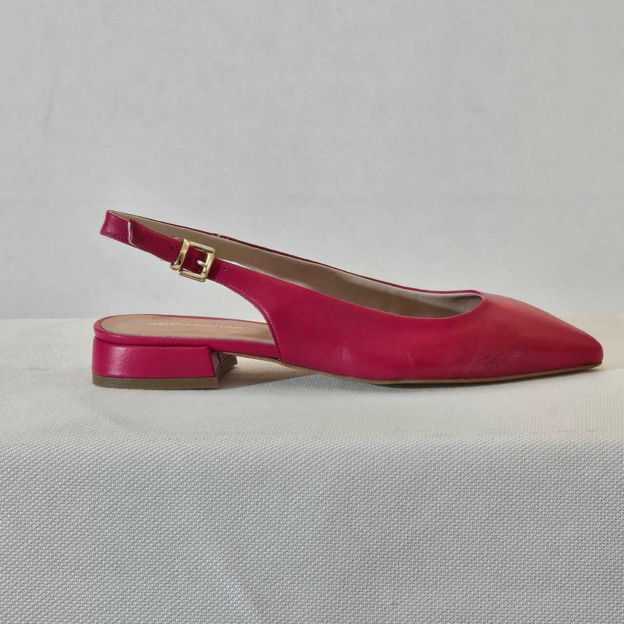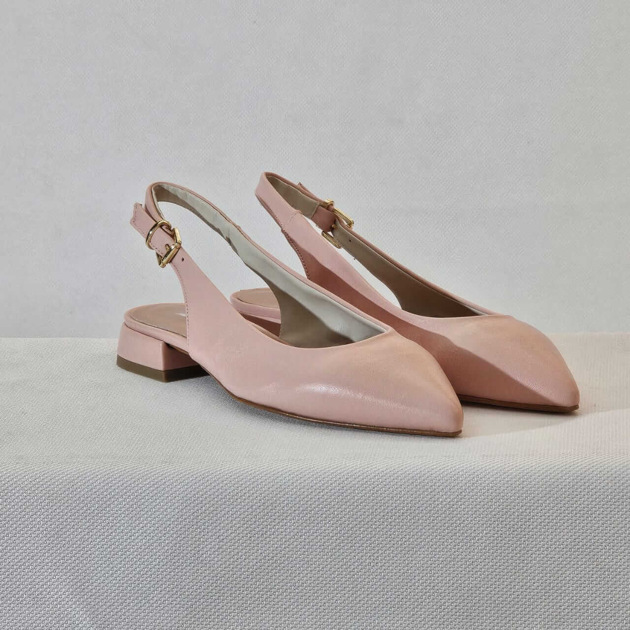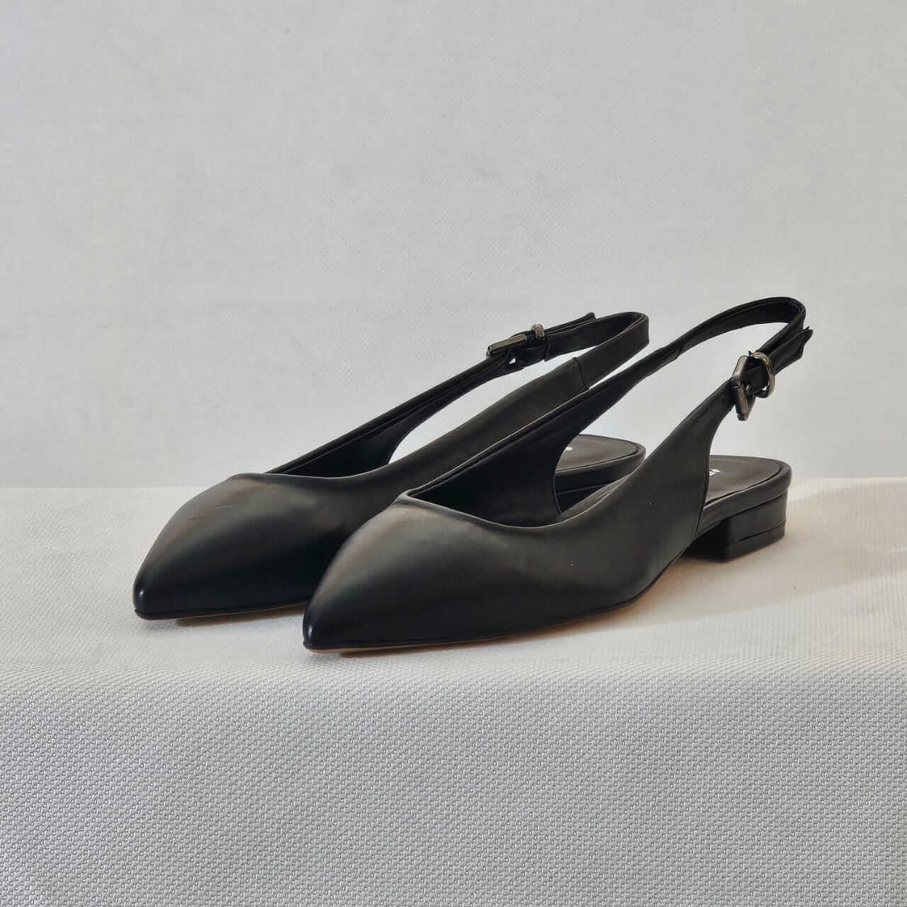 This slingback flat ballerina is a timeless style combining patent calf leather with comfort.