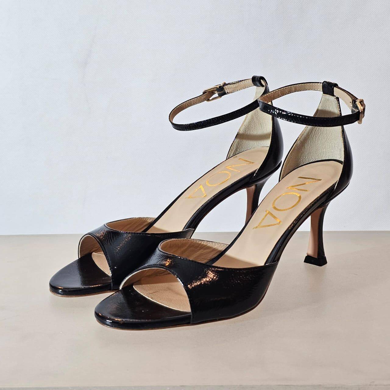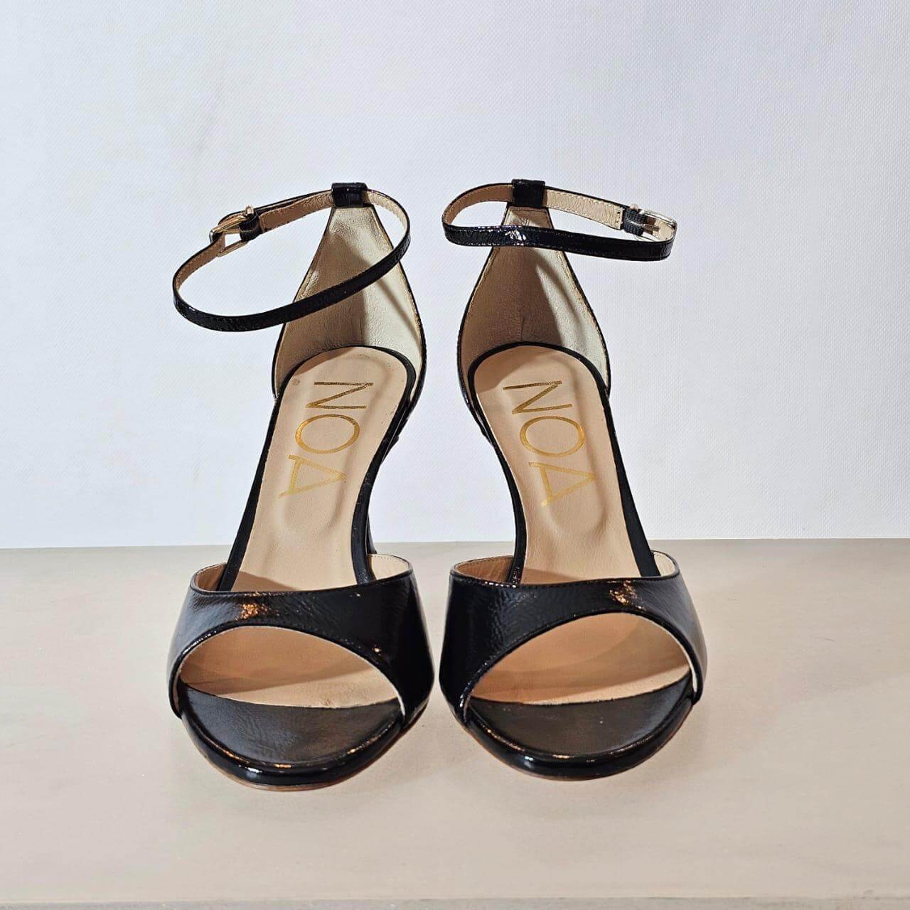 NOA High Heels For Women Ankle Strap Buckle Round Open Toe Stiletto Heels Sandals Comfortable For Everyday. Made In Italy.