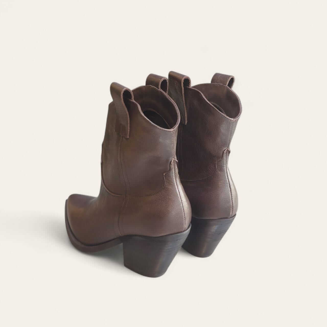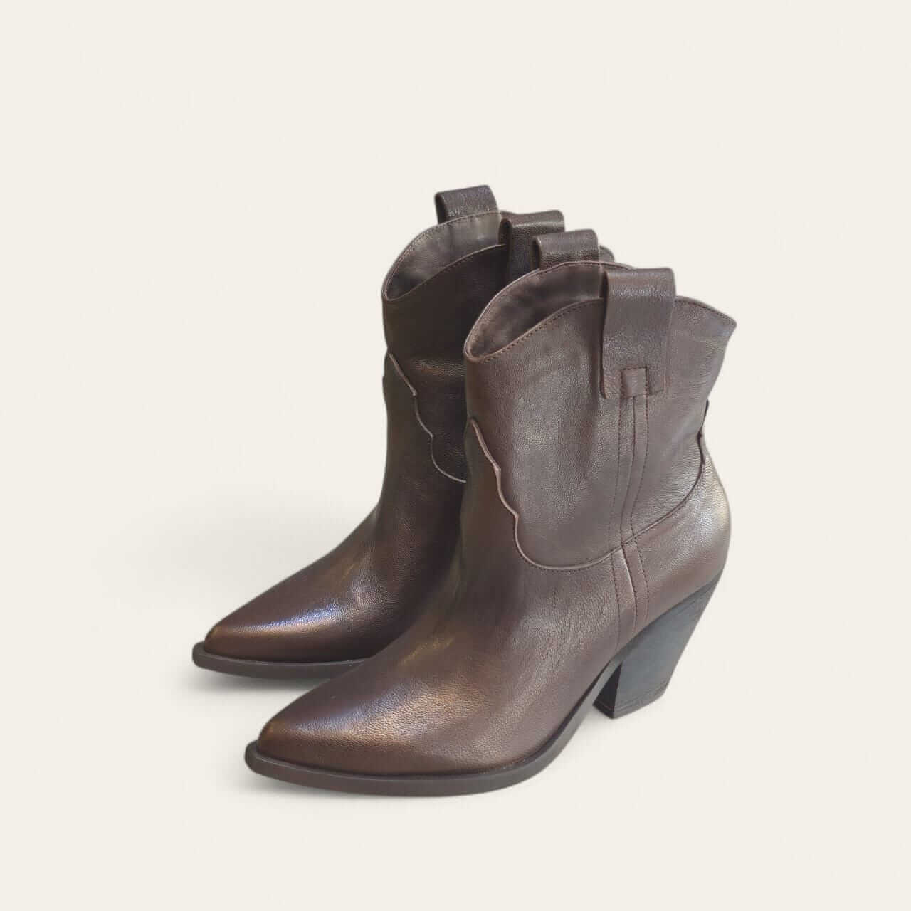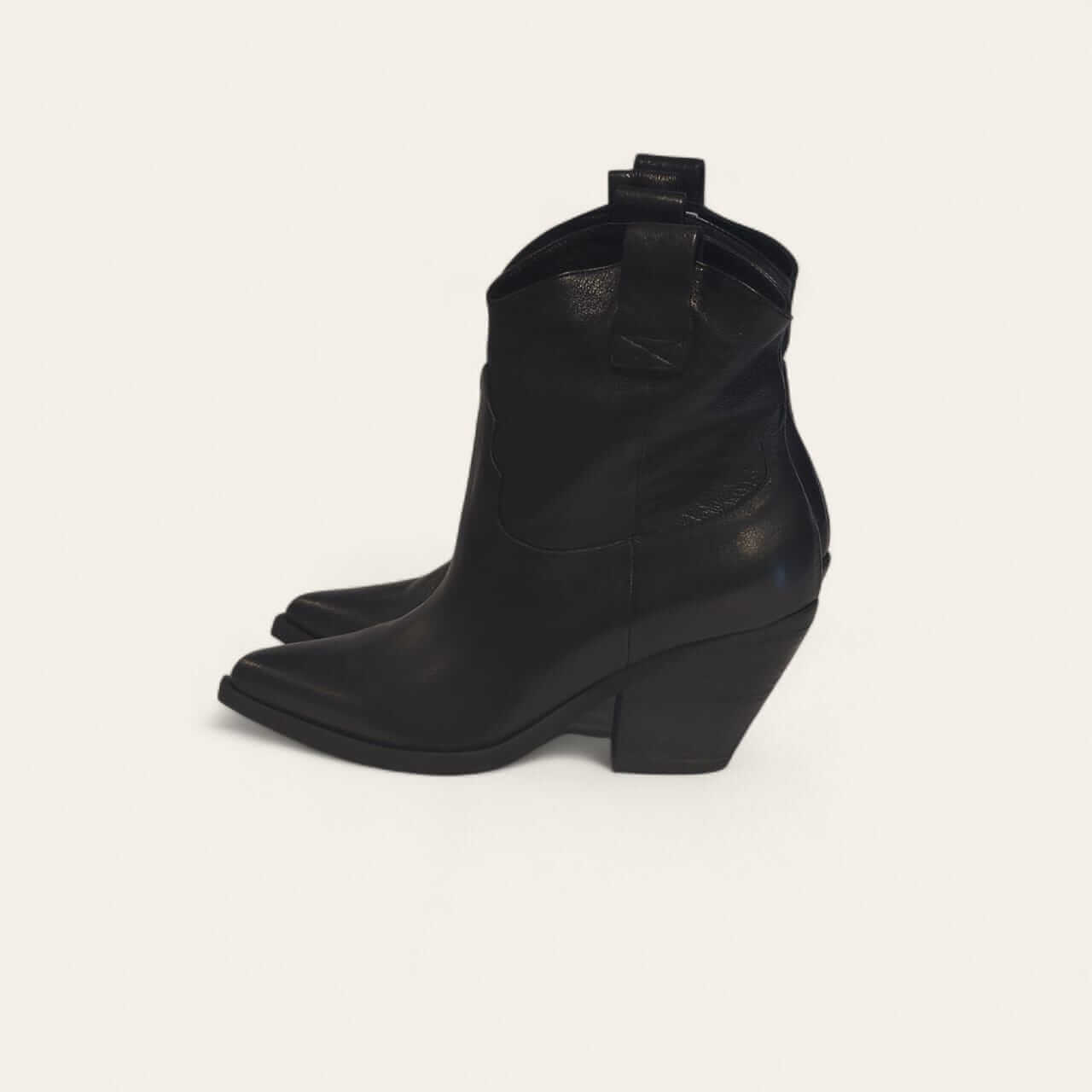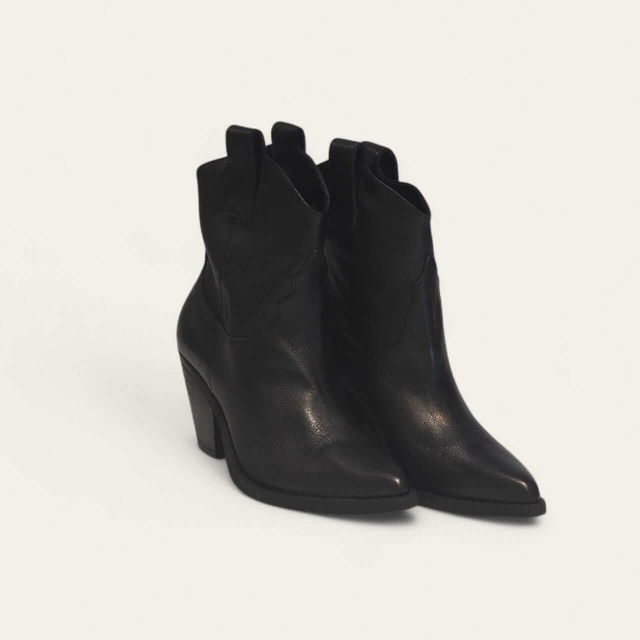 These Texas Boots combine Western style with refined elegance. Handcrafted from premium Italian leather, these ankle boots feature a pointed to, sculpted yet comfortable Cuban heel, and stitched detailing for a modern touch. Pair these boots with denim or a flow dress for the perfect fall outfit.