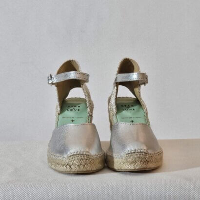 Shine and elegance combine in these platinum metallic leather espadrilles. A versatile design that elevates any look with its subtly luminous finish.