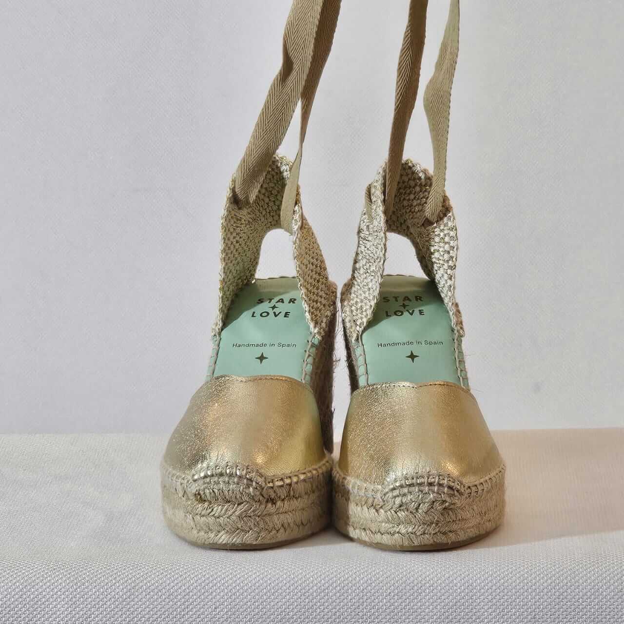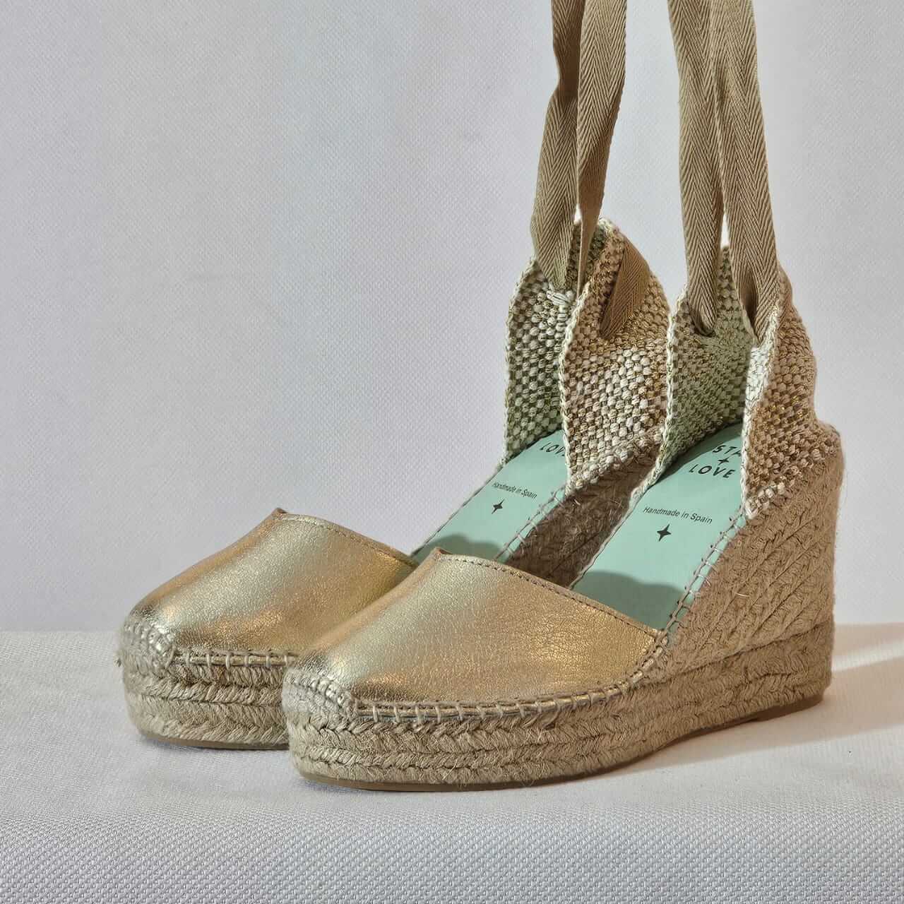STAR LOVE wedge heel in metallic leather, they are comfortable espadrilles thanks to the Star Love padded insole and light, very flexible sole.