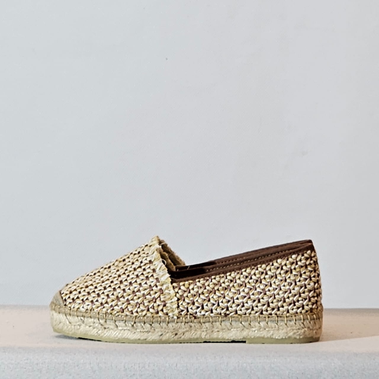 Star Love women’s flat wedge heel, in RaFia & leather , made in Spain.